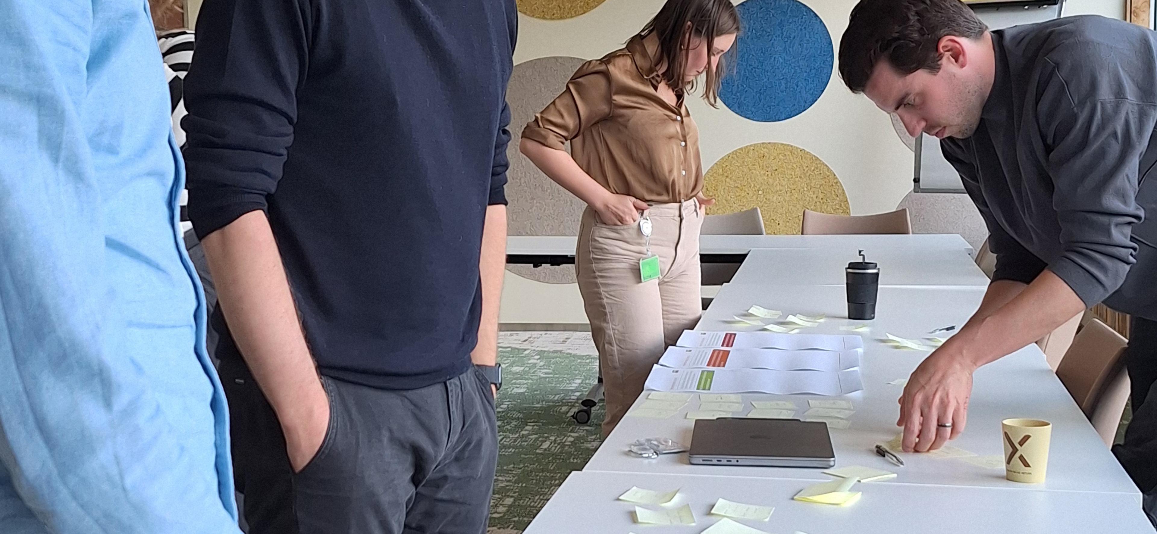 Hoe dat in de praktijk werkt? Onderdeel van CxE is om te onderzoeken hoe we innovatieteams van Alliander en ontwerpers kunnen laten samenwerken. Hun proces dat ze daarbij gebruiken is vastgelegd in wat zij de 'innovatiefunnel' noemen, een stappenproces om vraagstukken te definiëren, oplossingsrichtingen te zoeken, deze te realiseren en te implementeren. We zien tot nu toe dat ontwerpers in de eerste twee stappen van waarde kunnen zijn. Dus de definitie: is dit echt de vraag, of is er nog een vraag achter de vraag? En oplossingsrichtingen: op welke manieren kunnen we de puzzel leggen om tot een oplossing te komen?