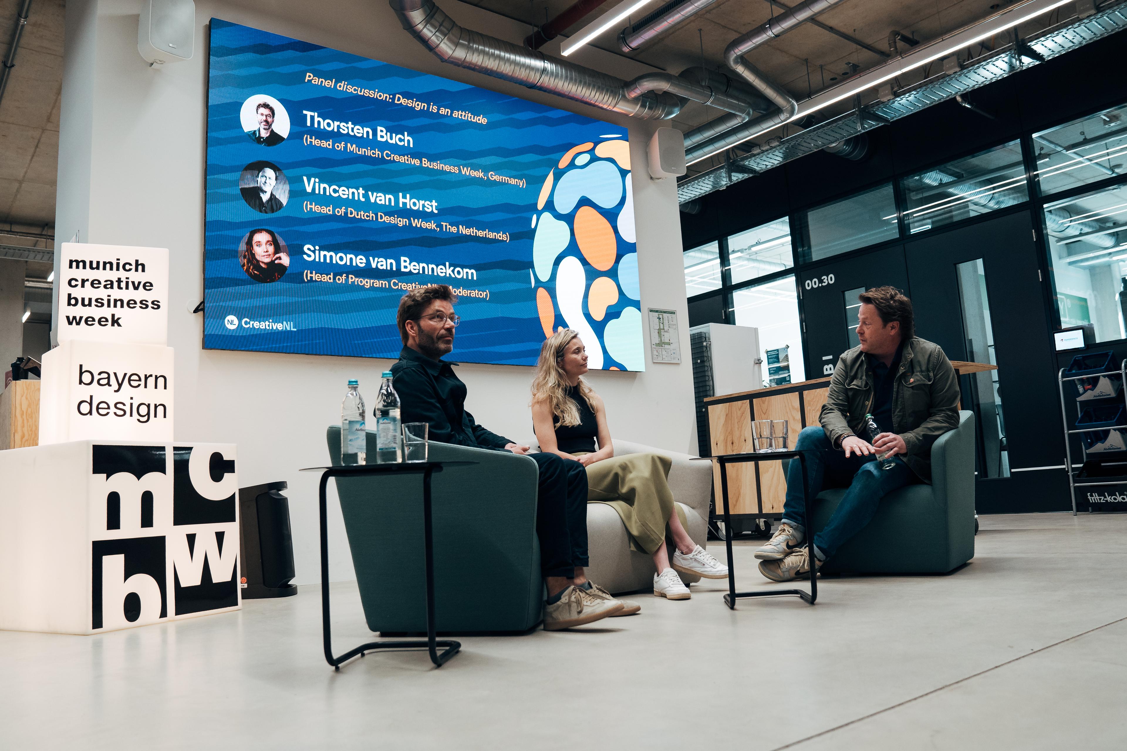 Creative x EnergyOne of the components of CreativeNL and Creative Arnhem's program during munich creative business week 2024 (MCBW) was the exclusive live conversation between Thorsten Buch and Vincent van Herk, the heads of MCBW and Dutch Design Week. Moderated by Simone van Bennekom (head of program CreativeNL and Creative Arnhem) they shared their views on the current design landscape, the differences between German and Dutch design, and the role of design in a society yearning for innovation.
